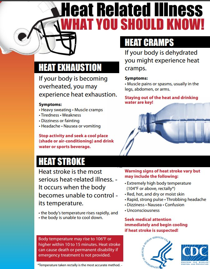 https://www.cdc.gov/niosh/heat-stress/about/illnesses.html. All heat-related symptoms and help. Hydrate.