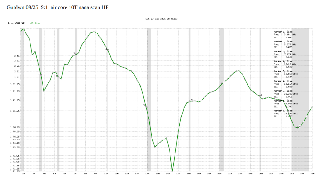 Graphic: NanoVNA VSWR sweep across the HF Frequencies. All under 3:1